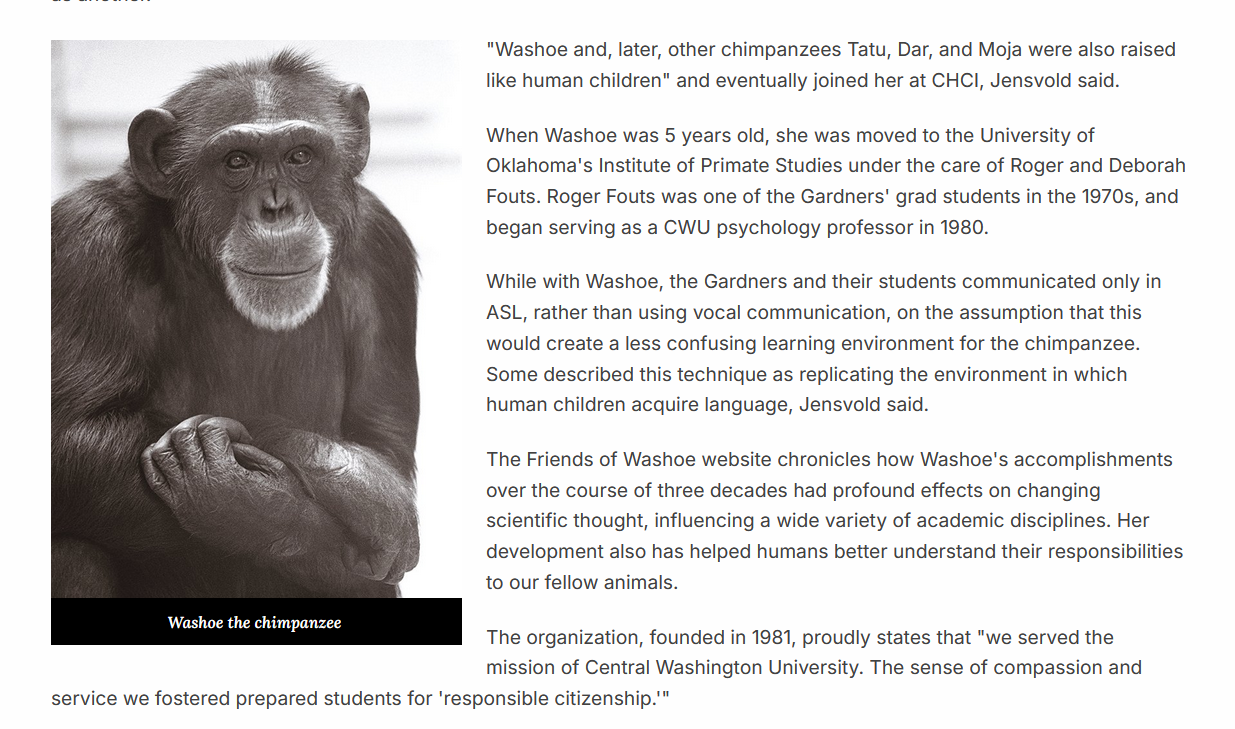 I took a couple classes while at CWU associated with CHCI.<3 Great Apes