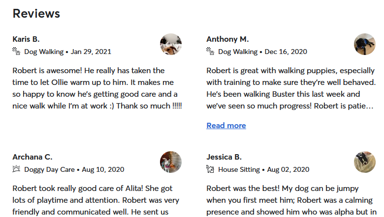 "Robert worked with me and displayed tremendous dog handling skills, dog training skills, communication skills, and work ethic. He is as solid and talented a person as they come." - Thomas, Manager at Camp Crockett